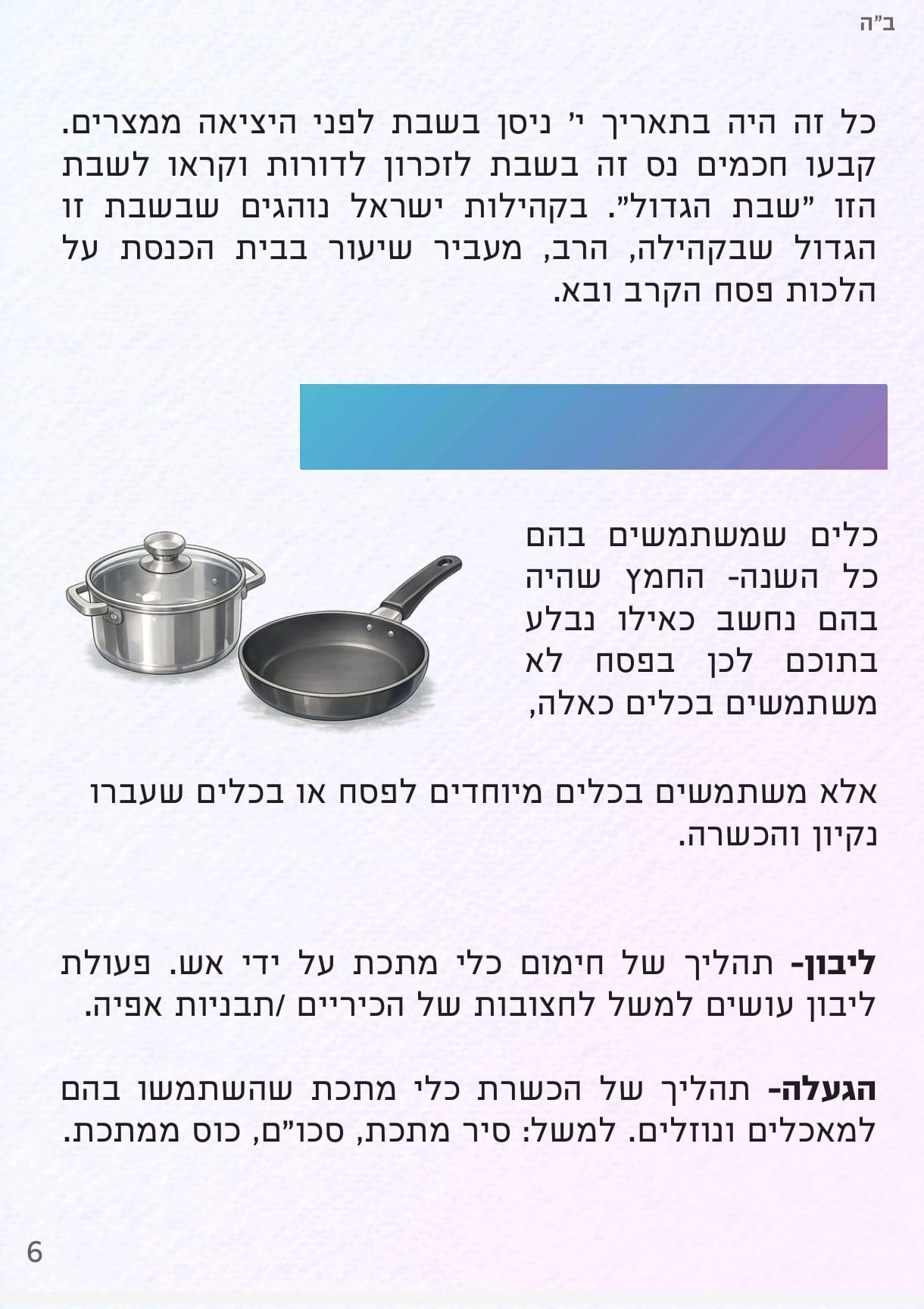 היום למדנו על הכשרת כלים לפסח. למדנו על הגעלת כלים וליבון.