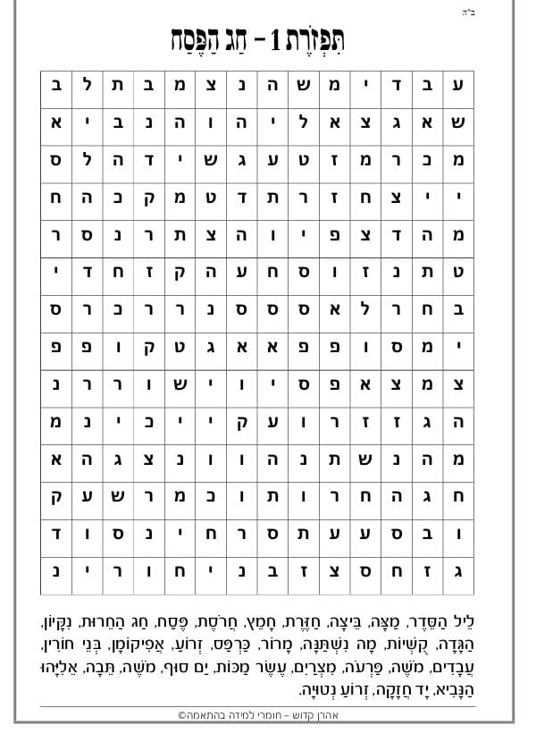 הנושאים שנלמד – שמות החג והמשמעות שלהם, איסור אכילת חמץ וכו'